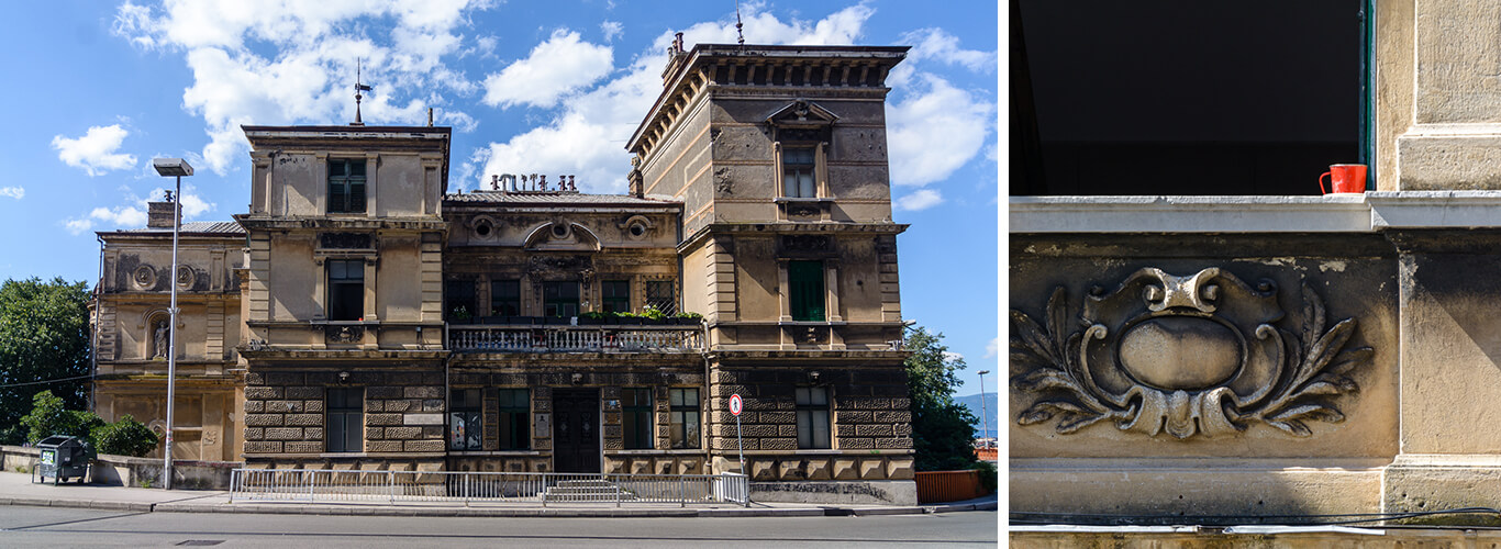 The house Sirius was built in 1912 according to the designs by Giovanni Rubinich. It is famous as the seat of the freemasons in Rijeka, which is witnessed by the decoration on the façade selected by Rubinich. Rubinich himself was a member of the loggia. This multiple-storey building is abundant with interesting façade sculpture inspired by the freemason symbolism – the lizard, a winged creature, a whale, a lion, the swastika, hearts, various floral details. The entran ...