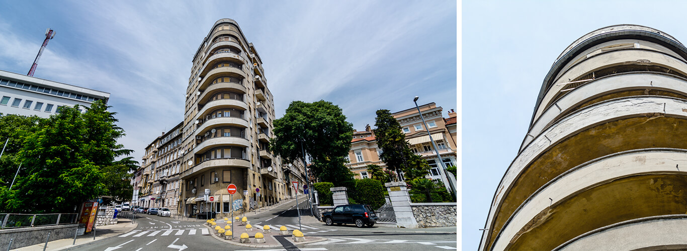 Popularno zvani Mali neboder sagrađen je 1939. prema projektu mladog arhitekta Raoula Puhalia koji je bio i naručitelj objekta. Raoul Puhali rođen je u Puli 1904., odakle se ubrzo preselio u Rijeku gdje je živio i djelovao nakon studija u Beču. Nakon Drugoga svjetskog rata izgubio je svu imovinu zbog čega odlazi u Trst i tamo djeluje do kraja života. Mali neboder jedno je od prvih njegovih djela, a neka od njegovih ostalih ostvarenja jesu: INPS neboder u Ulici Battisti u Trstu, neboder u Ulici ...