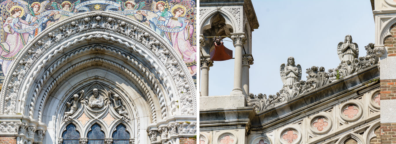 Kapucinska crkva gradila se prema ideji riječkog arhitekta Cornelija Budinicha trideset godina, s prekidima. Na inicijativu kapucina izgradnja crkve započeta je na koso položenom terenu uz samostanski vrt na nekadašnjem Trgu Zachy. Prve nacrte za dvojnu neogotičku baziliku Gospe Lurdske izradio je Giovanni Maria Curet. Prema njima, najprije je 1908. ukopana donja crkva Marije Tješiteljice Duša koja će poslužiti kao temelj gornjoj. Donja crkva je mala, trobrodna ...