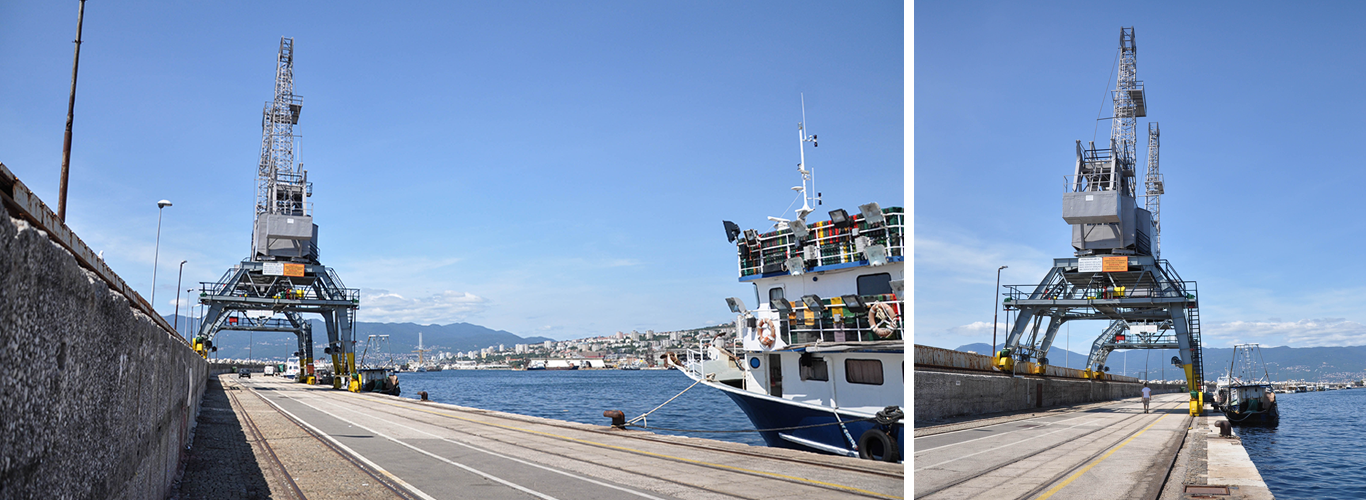 Lučke dizalice, od kojih su neke još i danas u upotrebi, postavljane su početkom 20. stoljeća. U pravilu je riječ o pokretnim dizalicama koje su se kretale metalnim šinama duž gata luke i tako opsluživale brodove. Uglavnom su Ganzove proizvodnje, ali neke je proizvela češka Škoda ili slovenska Metalna. Danas ti impresivni gorostasi imaju većinom tek simboličko značenje. S promjenama u tehnologiji transporta i načinu ambalažiranja tereta, većina ih je izgubila od svoje upotrebne vrijednosti.