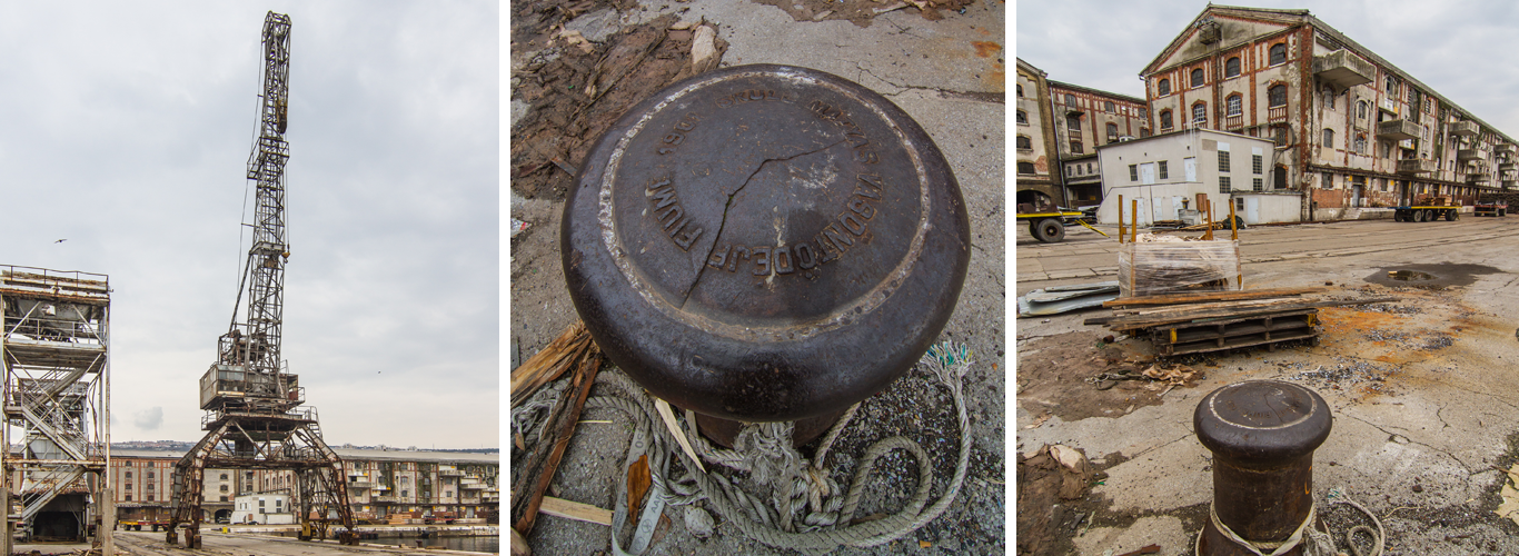 Kompleks od pet lučkih skladišta, koja se u dva reda nižu uz morsku obalu na krajnjem zapadnome dijelu lučke slobodne carinske zone, konzervatori su nazvali Metropolis jer svojom teatralnošću i nizanjem visećih pasaža podsjeća na scenografiju poznatoga SF-filma redatelja Fritza Langa. Građena su između 1909. i 1913. prema nacrtima mađarskih inženjera Wahlera i Rolberitza kombiniranjem armiranobetonske konstrukcije i tradicionalnog materijala opeke. O kvaliteti izvedbe govori činjenica da je nosivost na katovima 1.500 kg/m2, a u prizemlju čak 2.000 kg/m2. Godine 1914. donijeta je odluka o međusobnom povezivanju skladišta, za što su bili zaduženi Ignác Bereny i Béla Enyedi. Berenyjevom intervecijom skladišta su spojena u dva paralelna niza, dok je Enyedi zaslužan za poprečno povezivanje građevina, čime je stvorio već spomenutu bogatu scenografiju između skladišta.