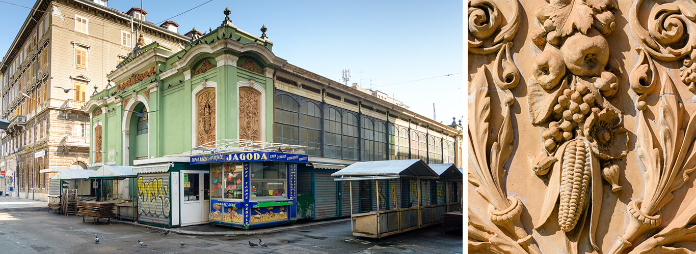 Paviljoni riječke tržnice izgrađeni su u razdoblju od 1880. do 1881. prema projektu Izidora Wauchniga, inženjera Gradskog tehničkog ureda.
