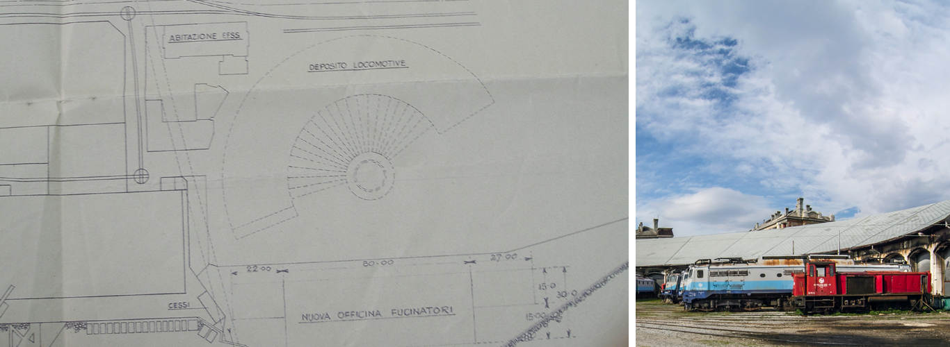 Nakon izgradnje željeznice i glavnoga željezničkog kolodvora bilo je potrebno napraviti i niz popratnih namjenskih objekata u koje se, prije svih, ubraja remiza. Remiza za lokomotive napravljena je nedaleko od glavnoga željezničkog kolodvora, u nekadašnjoj Industrijskoj ulici. Nije poznat arhitekt niti točno vrijeme izgradnje, ali se pretpostavlja da je remiza izgrađena neposredno prije Prvoga svjetskog rata. U toj se prizemnoj građevini polukružna tlocrta, pokrivenoj kosim krovom, nalaze dvadeset i dva kolosijeka za garažiranje lokomotiva. Stražnje pročelje zgrade, okrenuto prema današnjoj Ulici Milutina Barača, obilježeno je jednostavnom dekoracijom zida, raščlanjenog pilastrima od kamenog bunjata, između kojih se nalaze visoki otvori tipičnoga historicističkog dekorativnog završetka.