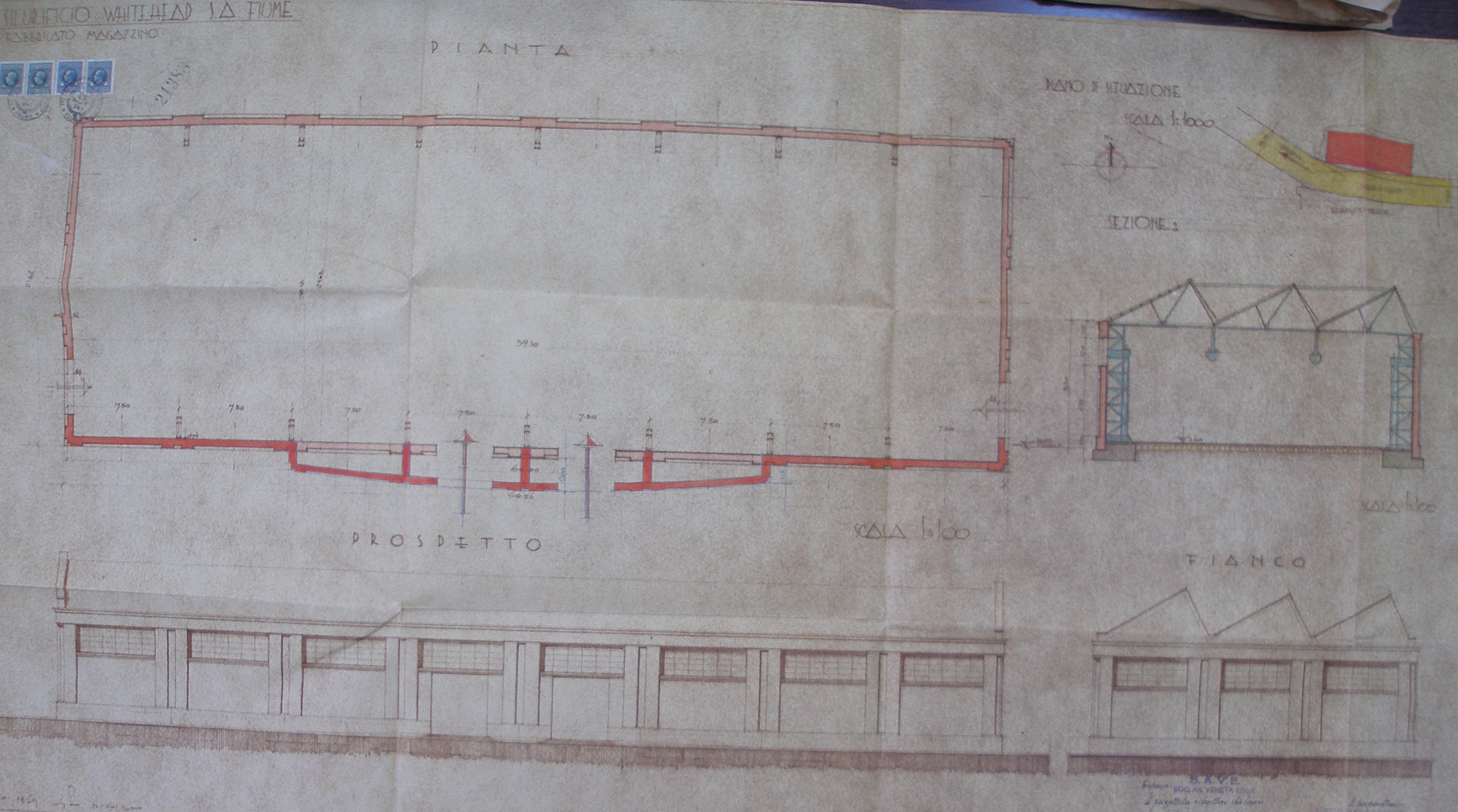 Što se tiče sačuvanih arhitektonskih prostora tvornice, prije svega valja spomenuti Vilu Whitehead kao najreprezentativniji dio upravne zgrade tvornice, zatim kompleks hala s pogonima, skladišta armiranobetonskih konstrukcija te samu lansirnu rampu na čijim su projektima radili poznati arhitekti Giacomo Zammatio, Giovanni Maria Curet i drugi.